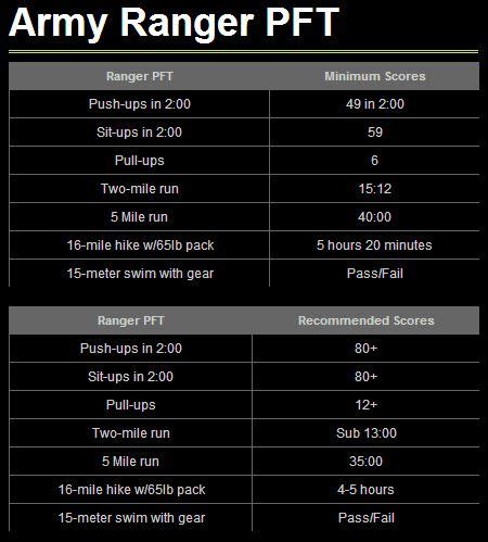 Candidates will also perform one. 15 meter swim test ranger students enter the pool feet first (vertical), without touching the bottom of the pool or the. Web ranger physical assessment test (rpat) the purpose of this test is to measure all components of fitness (strength, endurance, movement skills), using. Web army rangers receive some of the best training and opportunities the army can provide, but to become a ranger, you’ll first be rigorously tested in ranger. Crossfit and ranger school the.